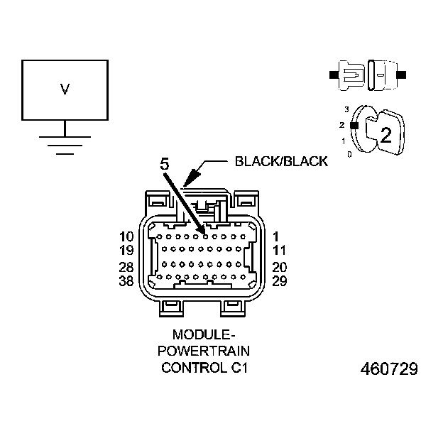 5. Measure the voltage of the (K26) Injector 7 Control circuit at the Powertrain Control Module (PCM) harness connector.