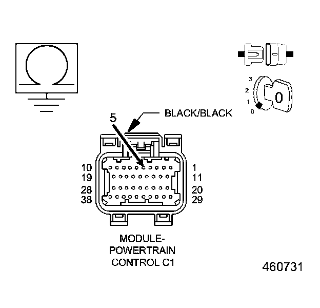 NOTE: The test light should be illuminated and bright. Compare the brightness to that of a direct connection to the battery.