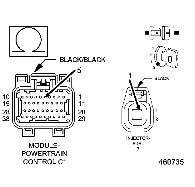 1. Using the wiring diagram/schematic as a guide, inspect the wiring and connectors between the Fuel Injector 7 and the Powertrain Control Module (PCM).