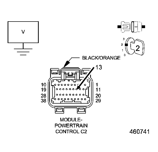 5. Measure the voltage of the (K28) Injector 8 Control circuit at the Powertrain Control Module (PCM) harness connector.