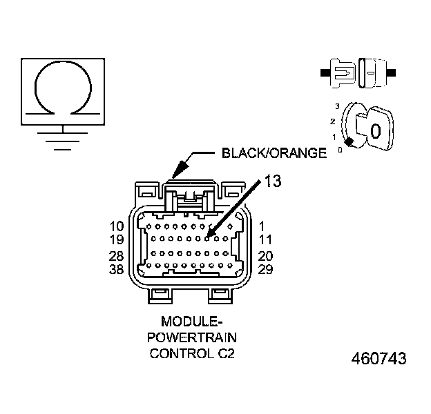 2. Measure the resistance between ground and the (K28) Injector 8 Control circuit at the Powertrain Control Module (PCM) harness connector.