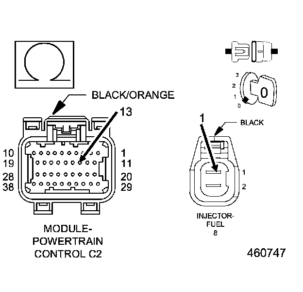 1. Using the wiring diagram/schematic as a guide, inspect the wiring and connectors between the Fuel Injector 8 and the Powertrain Control Module (PCM).
