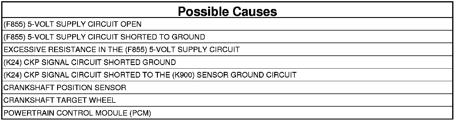 NOTE: This DTC is reported along with P0335-CRANKSHAFT POSITION SENSOR CIRCUIT to indicate the prevailing sensor voltage is too low. If P0335 is present, properly follow the diagnostics and perform the necessary repair before continuing with this test.