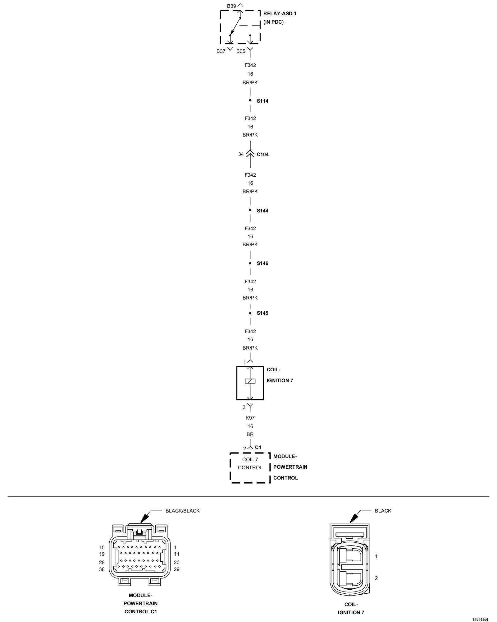 5. Using a 12-volt test light connected to ground, check the (K342) ASD Relay Output circuit in the Ignition Coil 7 harness connector.