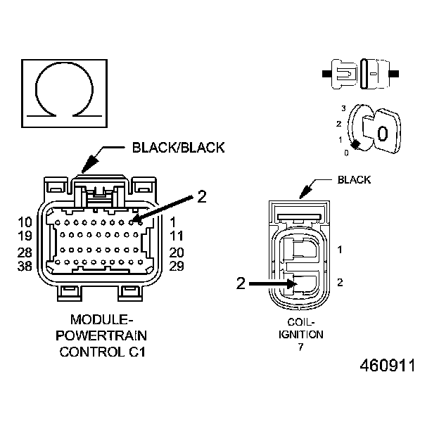 1. Using the wiring diagram/schematic as a guide, inspect the wiring and connectors between the Ignition Coil 7 and the Powertrain Control Module (PCM).