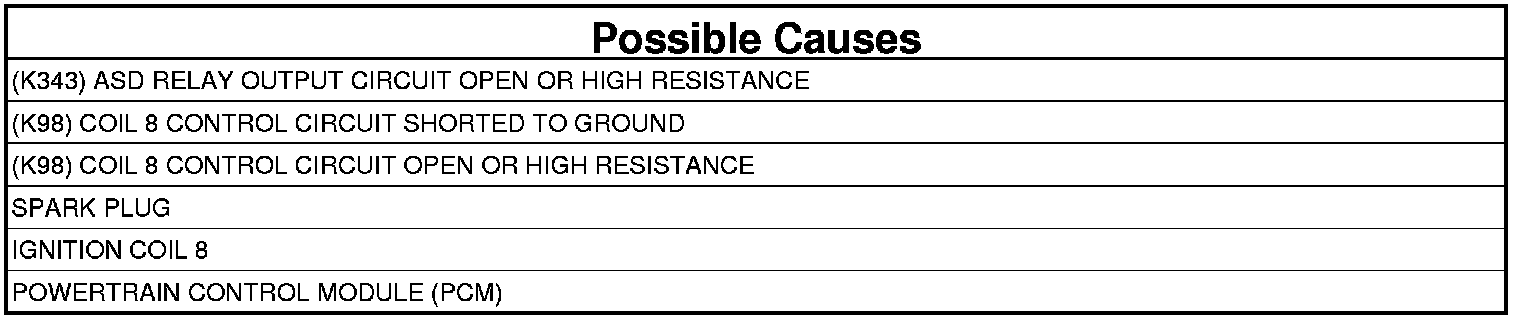 - Repair the (K98) Coil 8 Control circuit for a short to ground.