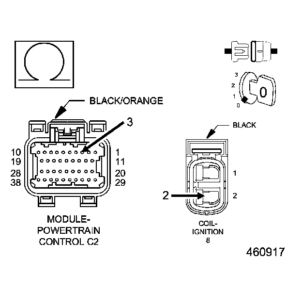 1. Using the wiring diagram/schematic as a guide, inspect the wiring and connectors between the Ignition Coil 8 and the Powertrain Control Module (PCM).