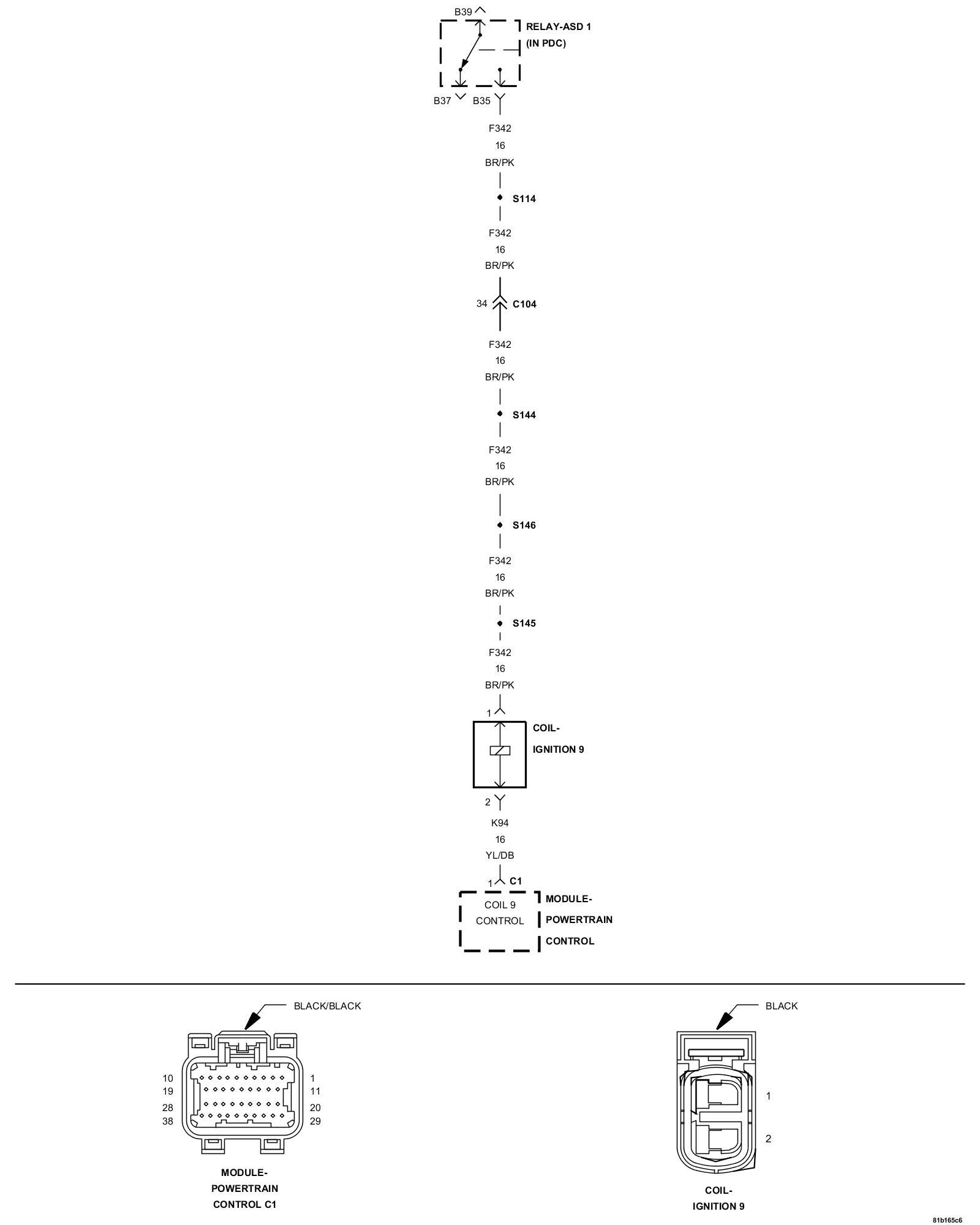 5. Using a 12 volt test light connected to ground, check the (K342) ASD Relay Output circuit in the Ignition Coil 9 harness connector.