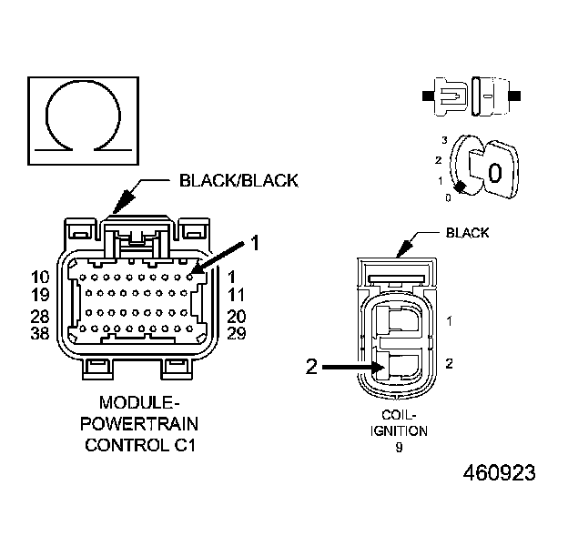 1. Using the wiring diagram/schematic as a guide, inspect the wiring and connectors between the Ignition Coil 9 and the Powertrain Control Module (PCM).