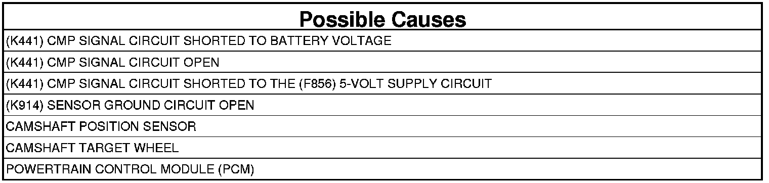 NOTE: This DTC is reported along with P0365-CAMSHAFT POSITION SENSOR CIRCUIT to indicate the prevailing sensor voltage is too high. If P0365 is present, properly follow the diagnostics and perform the necessary repair before continuing with this test.
