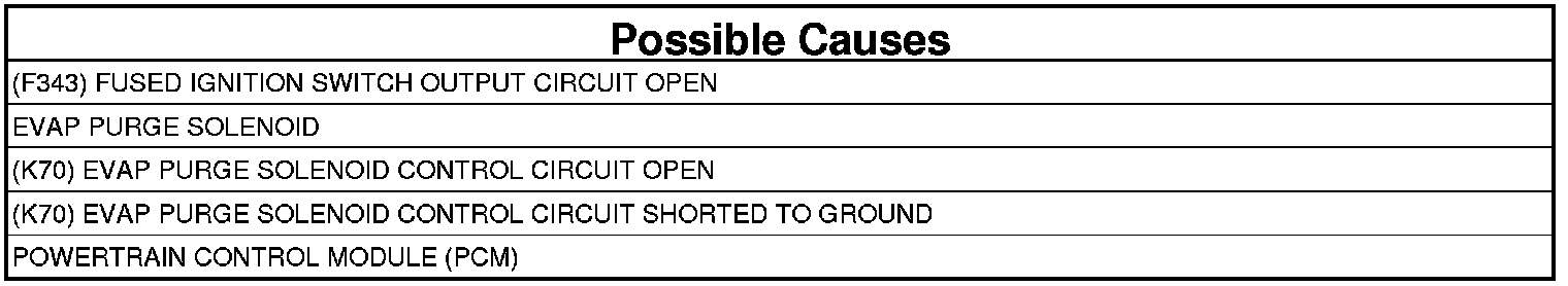 - Repair the open in the (K70) EVAP Purge Solenoid Control circuit.