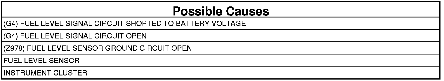 - Repair the short to battery voltage in the (G4) Fuel Level Signal circuit.