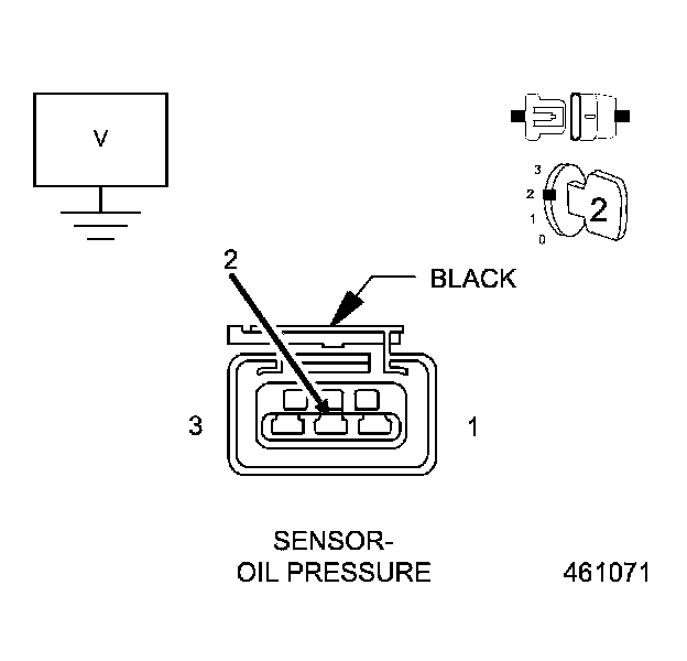 2. Using a voltmeter, perform a voltage drop test by backprobing the (K914) Sensor Ground circuit at the Engine Oil Pressure Sensor and Powertrain Control Module (PCM) harness connectors. Make sure the voltmeter leads are connected so that positive polarity is displayed on the voltmeter.