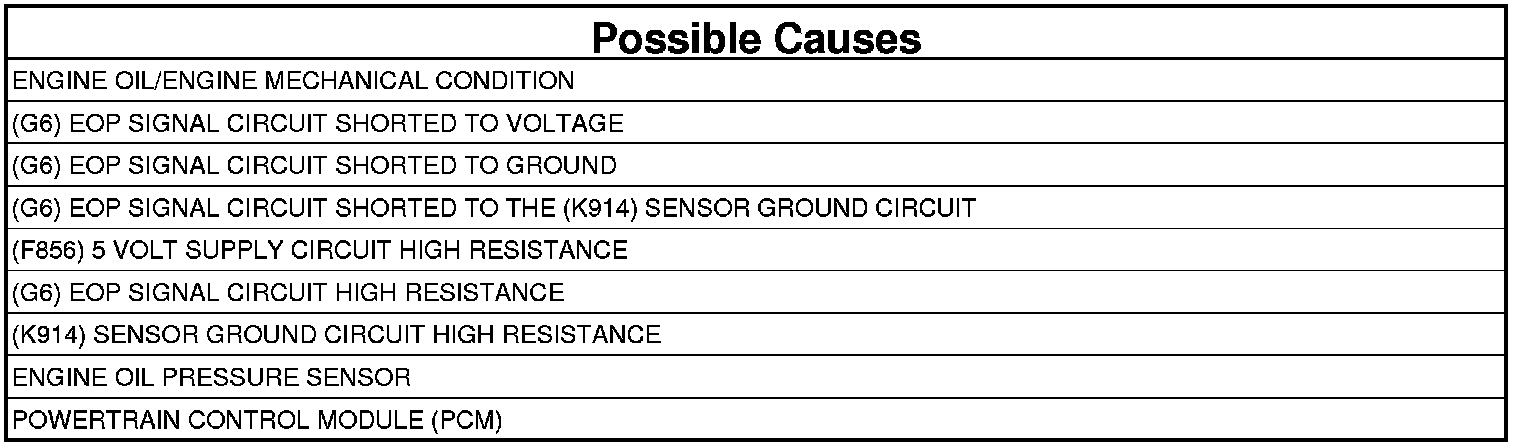 - Repair the (G6) EOP Signal circuit for a short to the (K914) Sensor Ground circuit.