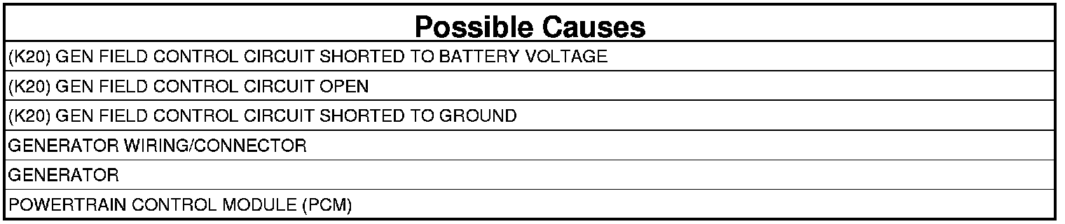 3. (K20) GEN FIELD CIRCUIT SHORTED BATTERY VOLTAGE