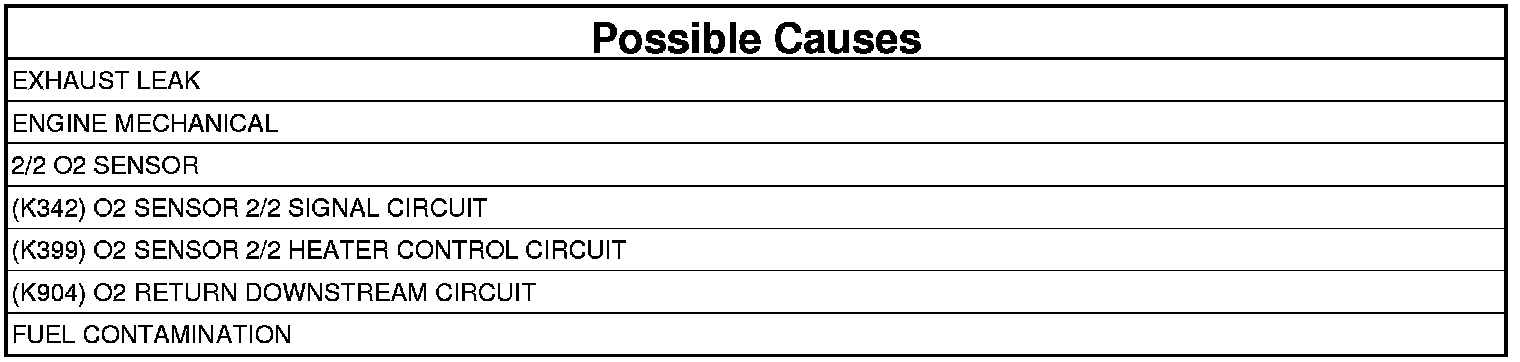 - Check the (K904) O2 Return Downstream circuit for a short to ground, open, or short to voltage. Inspect the O2 Sensor connector and the PCM harness connector. If OK, replace and program the Powertrain Control Module.