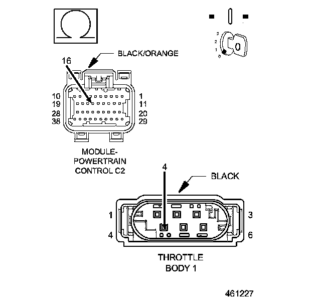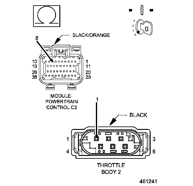 1. Using the wiring diagram/schematic as a guide, inspect the wiring and connectors between the Throttle Body and the Powertrain Control Module (PCM).