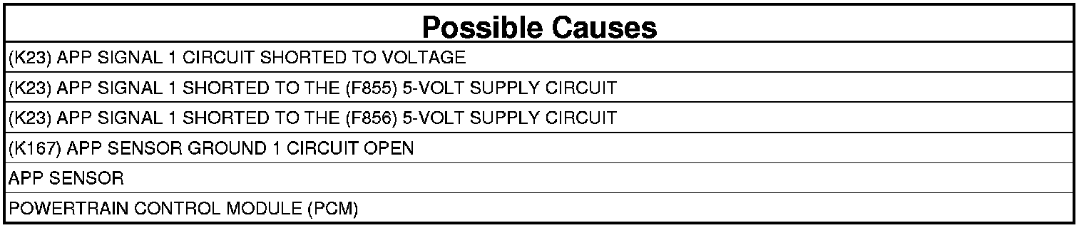 4. (K23) APP SIGNAL 1 CIRCUIT SHORTED TO THE (F856) 5-VOLT SUPPLY CIRCUIT