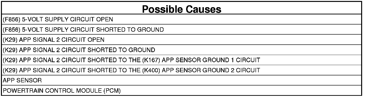 5. (K29) APP SIGNAL 2 CIRCUIT SHORTED TO THE (K400) APP SENSOR GROUND 2 CIRCUIT