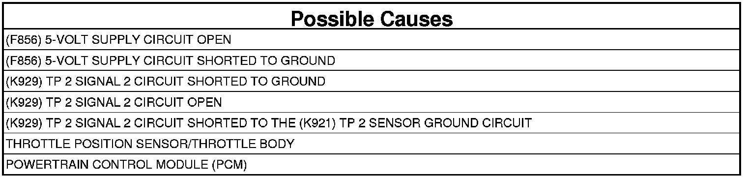 7. (K929) TP 2 SIGNAL 2 CIRCUIT SHORTED TO THE (K921) TP 2 SENSOR GROUND CIRCUIT