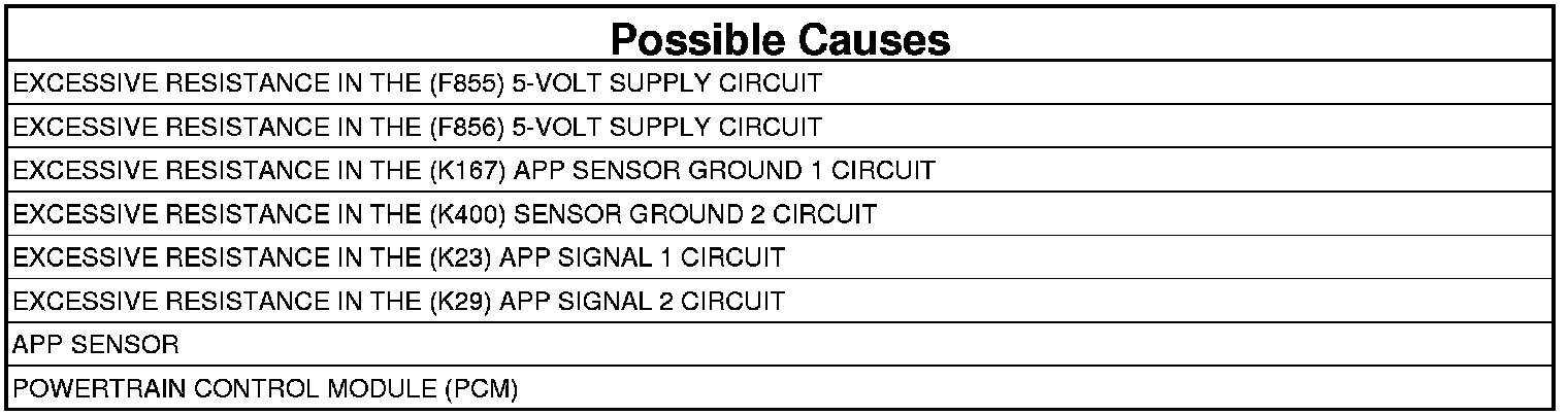 - Repair the excessive resistance in the (K167) APP Sensor ground 1 circuit.