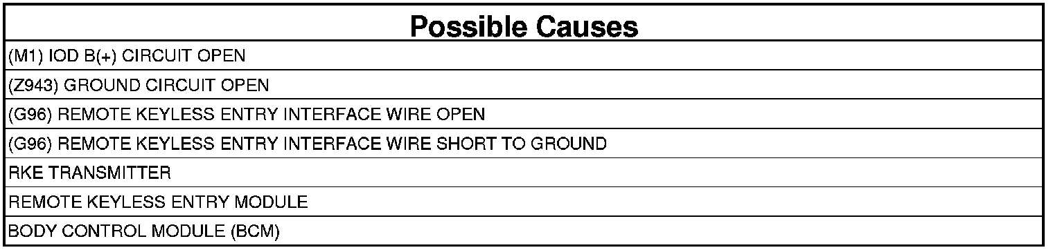 - Repair the (G96) Remote Keyless Entry Interface wire for a short to ground.
