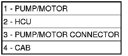 The Hydraulic Control Unit (HCU) (2) and the Controller Antilock Brake (CAB) (4) used with this antilock brake system are combined (integrated) into one unit, which is called the Integrated Control Unit (ICU).