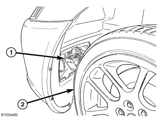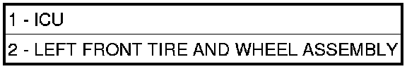 The ICU (1) is located behind a panel, in front of the left front tire and wheel assembly (2).