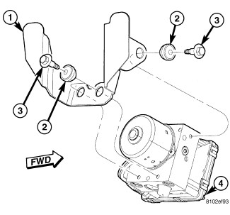 2. Install three bolts (3) attaching ICU to mounting bracket. Tighten mounting bolts to 10 Nm (85 in. lbs.).