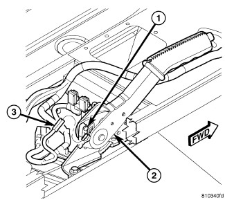 6. Cycle parking brake lever (2) once to position parking brake cables, then return lever its released position.