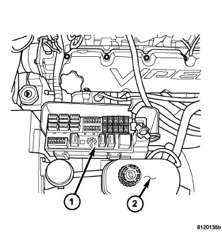 1. Position the A/C clutch relay into the proper receptacle of the PDC (1).