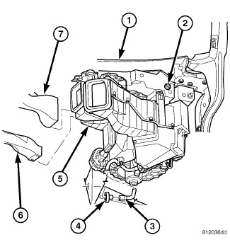1. Position the HVAC housing (5) into the vehicle.