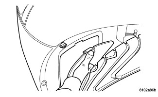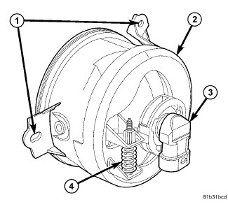 3. Reach in through the wheel well access and disengage fog lamp (2) electrical connector.