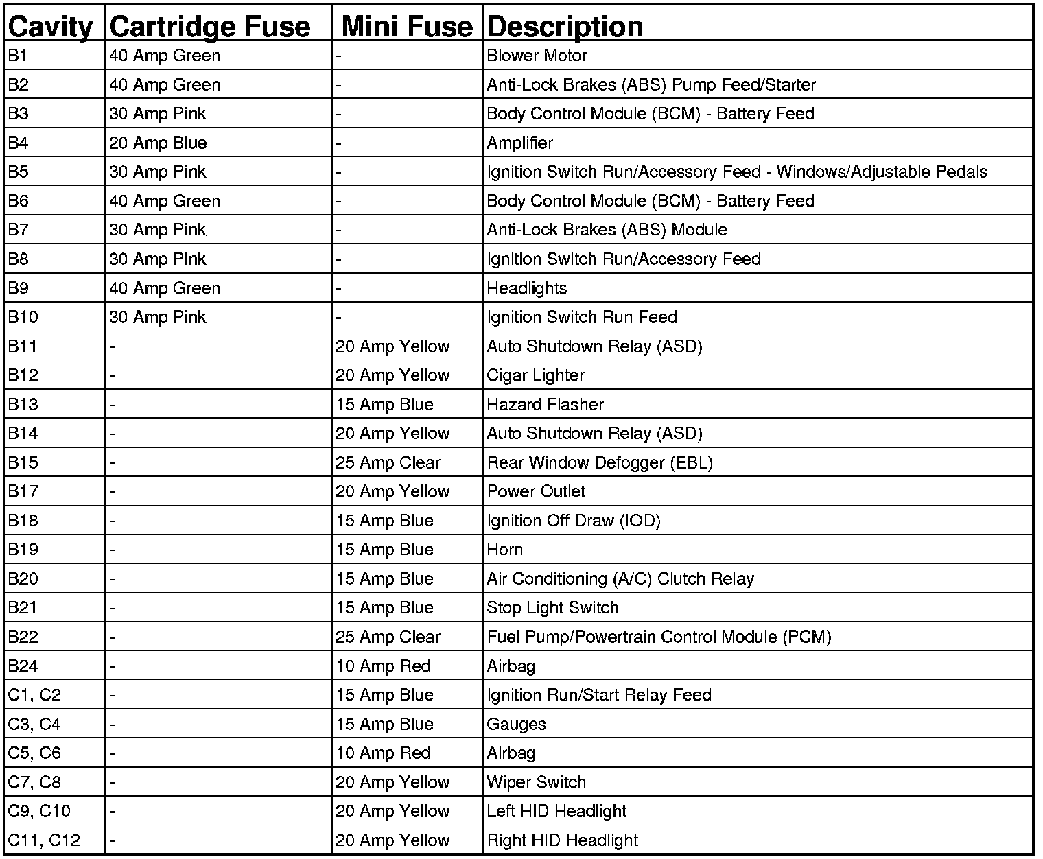 CAUTION: When replacing a blown fuse, it is important to use only a fuse having the correct amperage rating. The use of a fuse with a rating other than indicated may result in a dangerous electrical system overload. If a properly rated fuse continues to blow, it indicates a problem in the circuit that must be corrected.