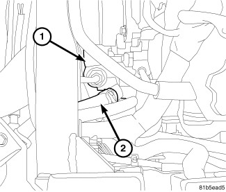 1. Install supply hose (2) on fitting of power steering pump (1). Install hose clamp on return hose past upset bead on pump fitting.