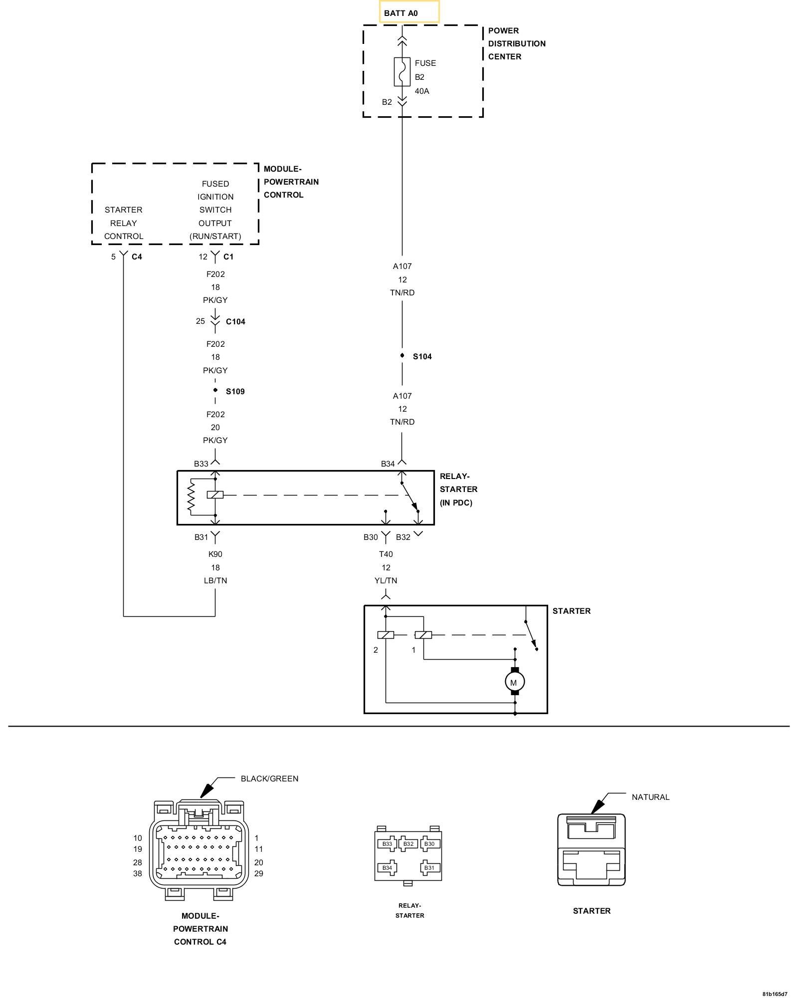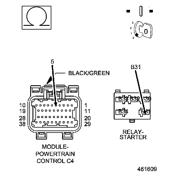 - Repair the open in the (K90) Starter Relay Control circuit.