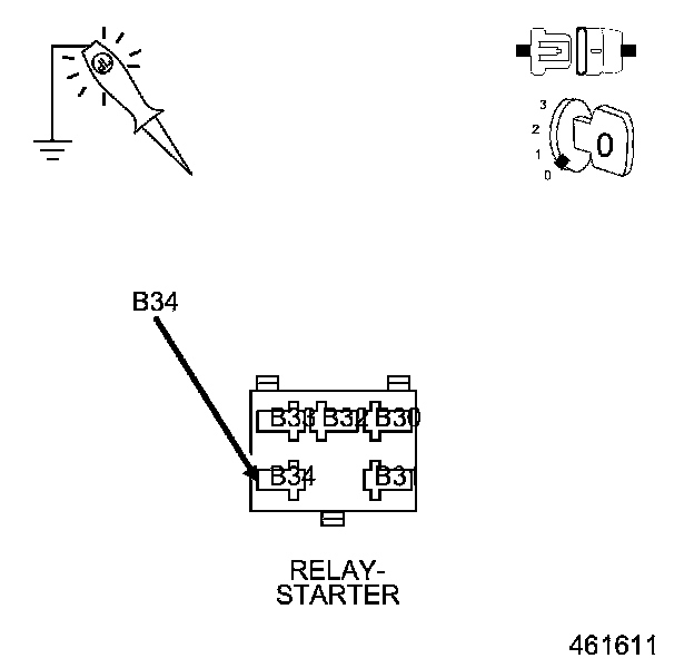 3. While observing 12-volt test light, hold ignition key on and the Start Button pressed.