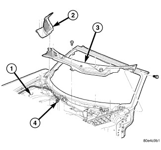4. Install the wiper cowl panel (3) Cowl Panel Cover - Installation
