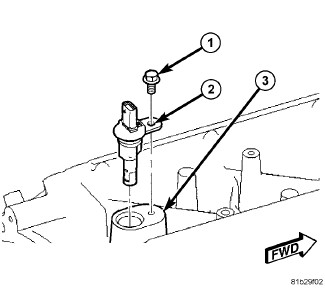 CAUTION: Lightly lubricate the camshaft position sensor O-ring with engine oil to prevent damage to the O-ring during installation. Hand start the bolt to prevent damage from cross-threading.