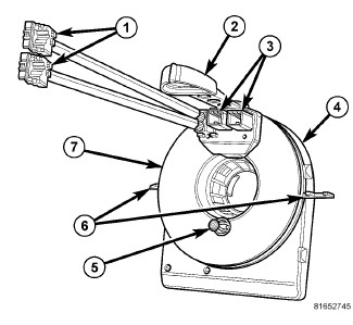 6. Rotate the clockspring rotor (7) clockwise to the end of its travel. Do not apply excessive force.