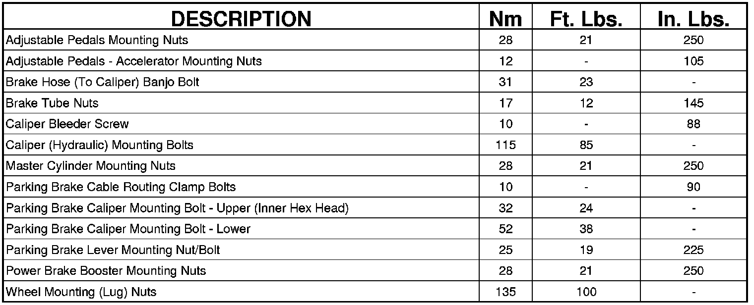 BRAKE FASTENER TORQUE