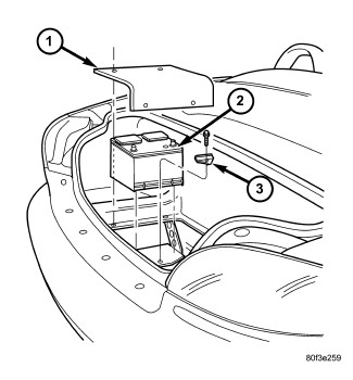 The battery is placed in a stamped metal tray located in the trunk. The