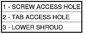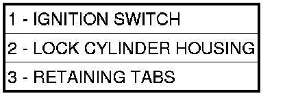 2. Place key cylinder in RUN position. Through the hole in the lower shroud, depress lock cylinder retaining tab and remove key cylinder.