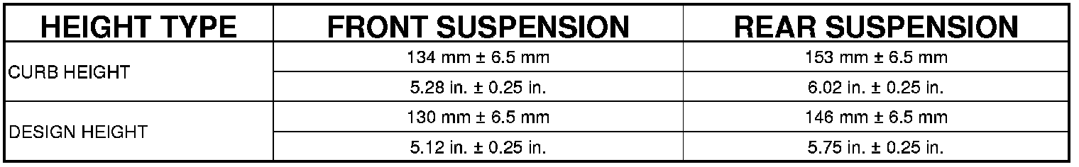 All height specifications are taken with the vehicle full of fuel and properly weighted.