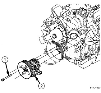1. Position power steering pump (2) on engine.