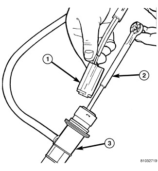 3. Push clutch switch (1) up actuator rod (2) slightly. Then pull the bottom of the clutch switch (1) outward.