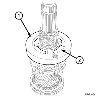 17. Remove 3-4 synchronizer hub (1) snap ring (2) from mainshaft.