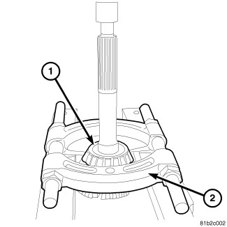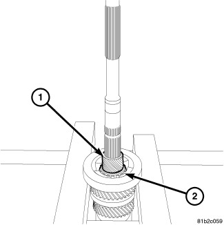 13. Remove second gear bearing (1) from mainshaft (2).