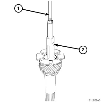 12. Remove second gear bearing spacer (1) from mainshaft (2).