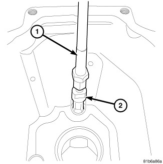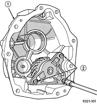 1. Remove extension housing (1) idler gear bracket bolts (2) and bracket.